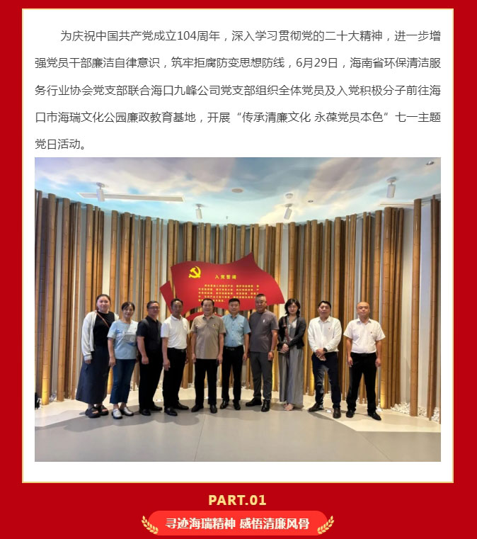 【清廉守正 砥砺初心】协会党支部赴海瑞文化公园开展“七一”廉政教育活动